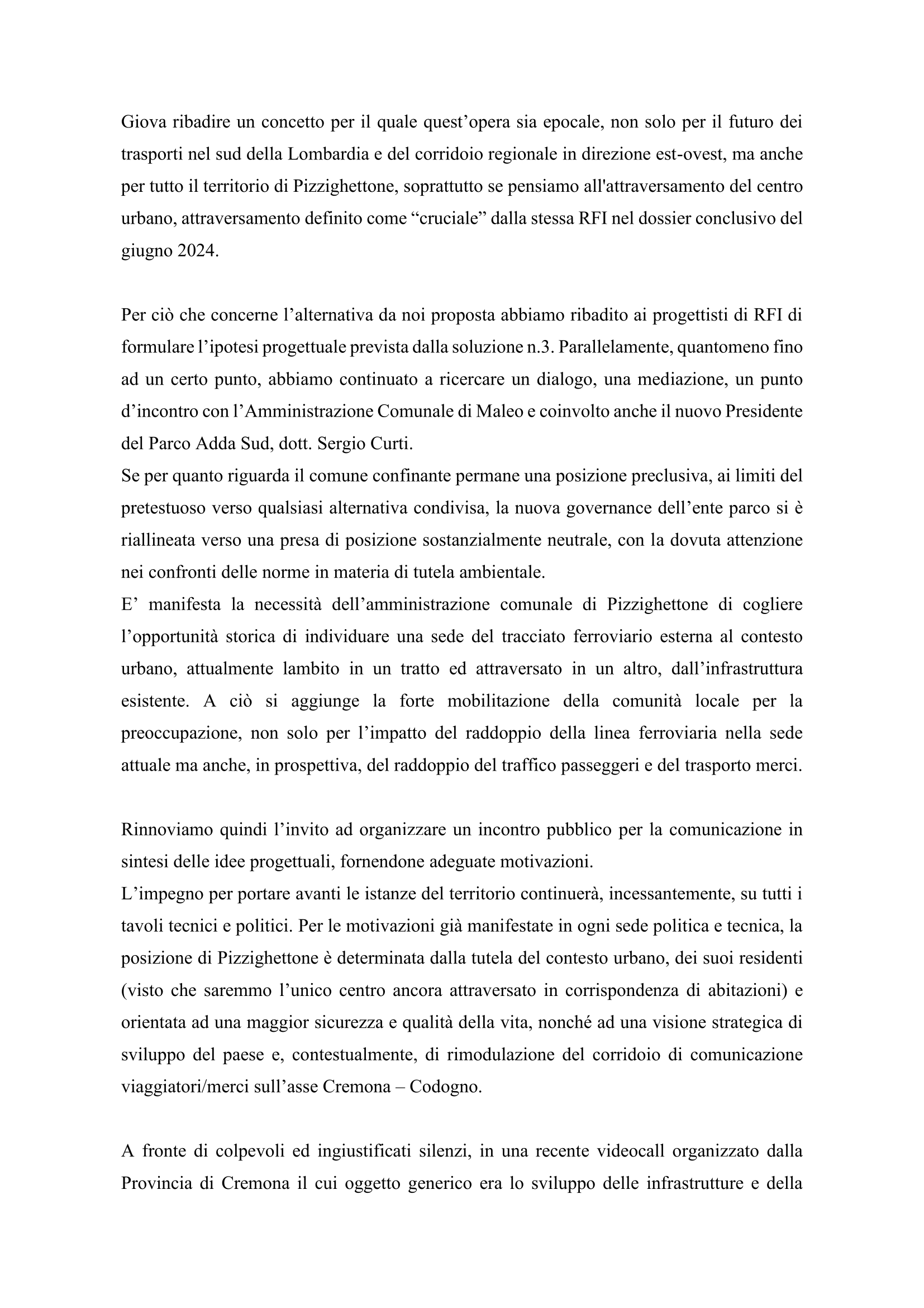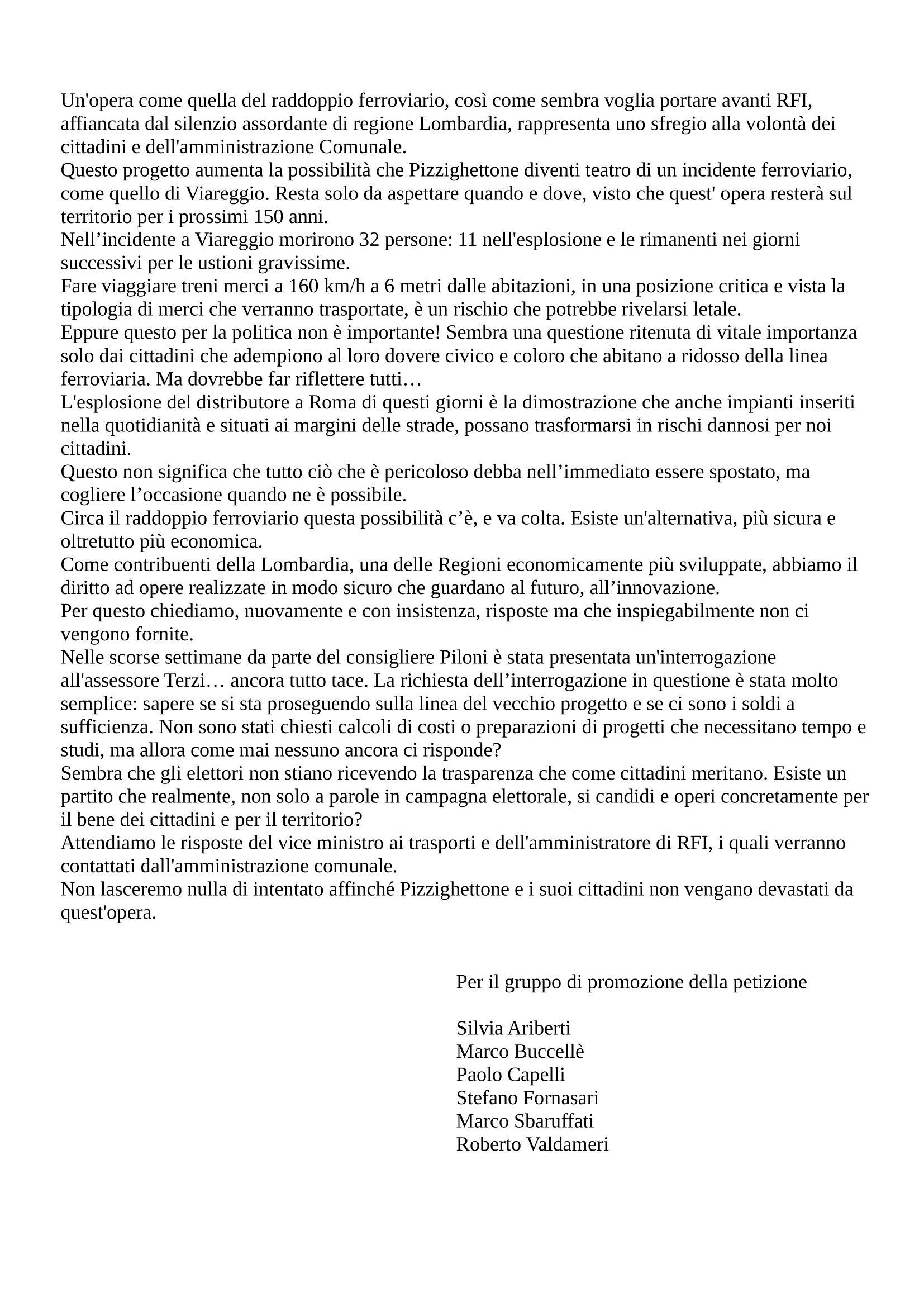 Siamo favorevoli al raddoppio ma chiediamo una revisione del progetto attualmente presentato perchè ci riteniamo preoccupati circa le criticità che ne conseguiranno legate a: