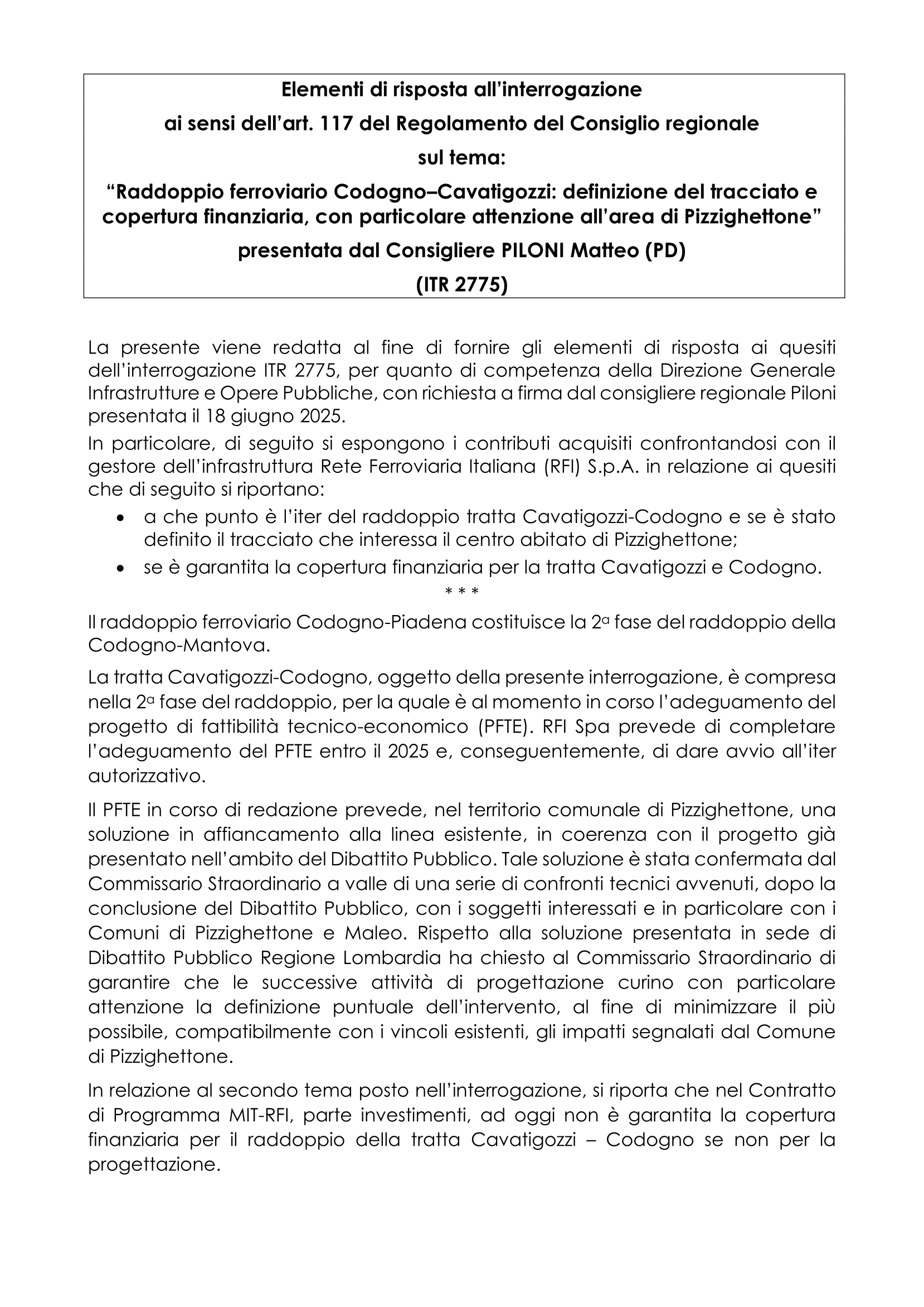 Di seguito invece due estratti dalla documentazione di RFI.