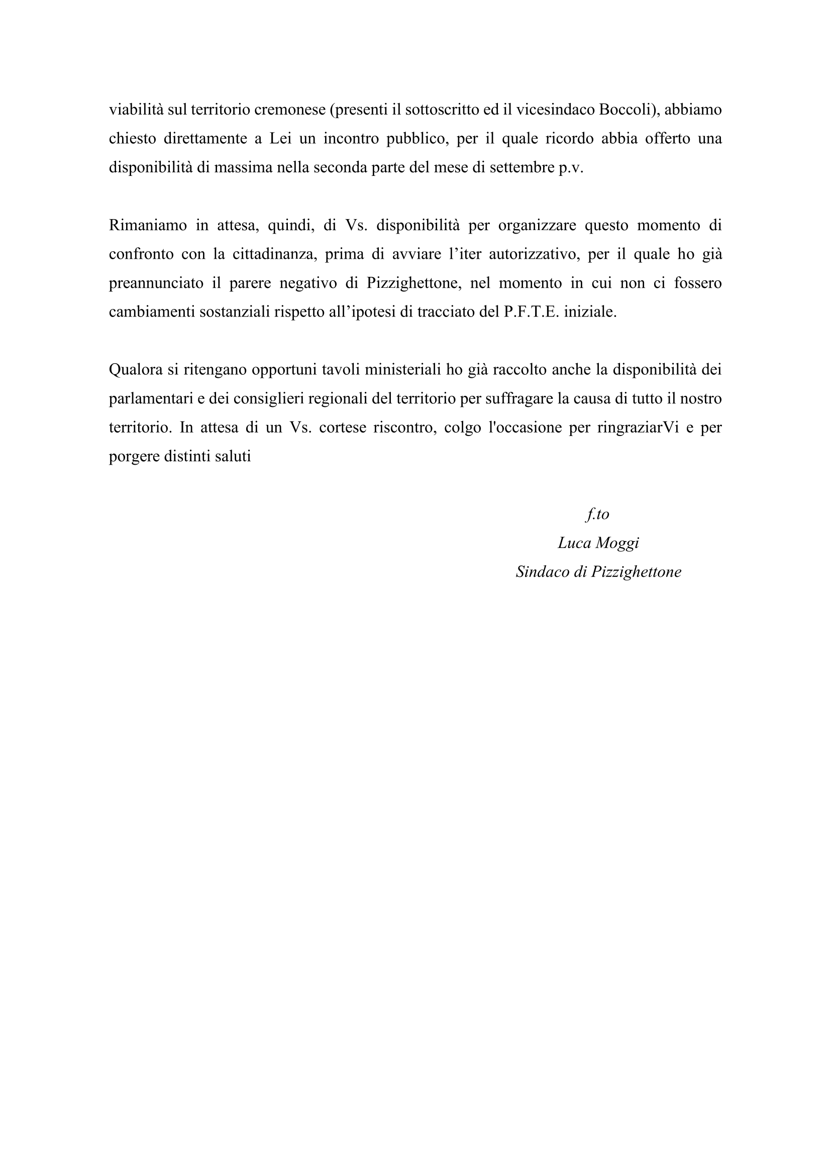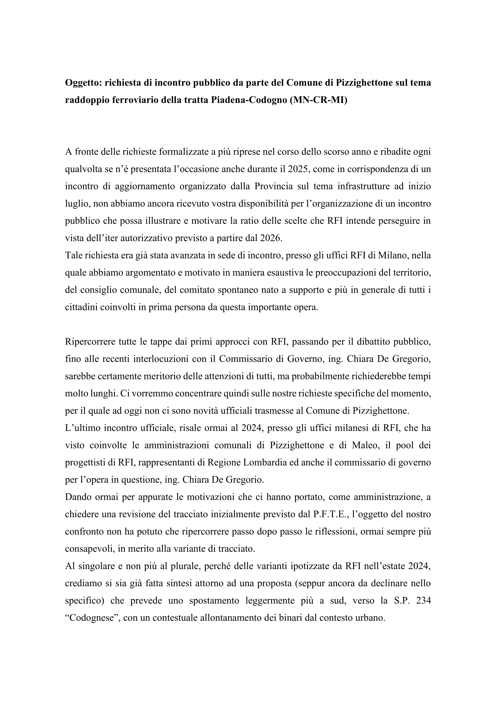 RFI ha consegnato la relazione conclusiva che riassume i temi trattati durante gli incontri del dibattito pubblico. Tale documento evidenzia la forte criticità del progetto sul territorio di Pizzighettone ed è scaricabile cliccando qui.