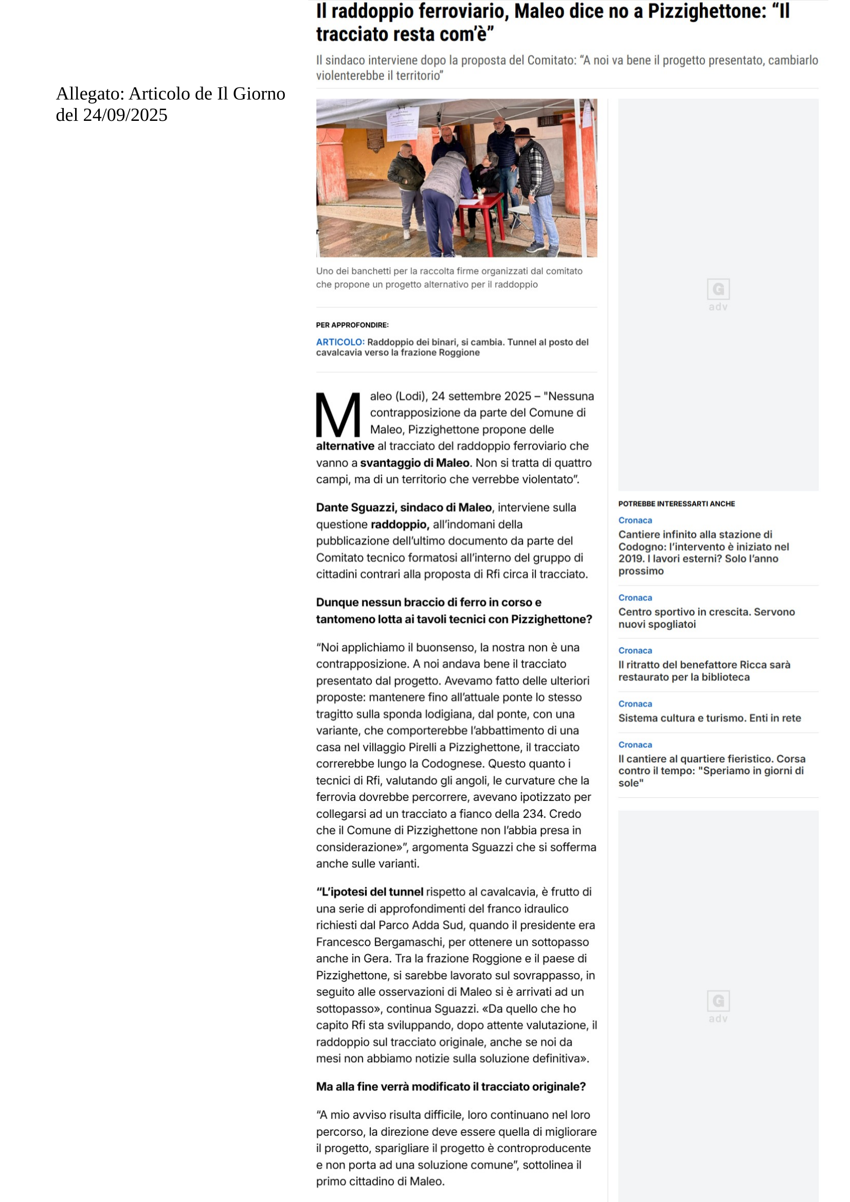 La petizione e il tema del raddoppio ferroviario ha avuto un richiamo mediatico notevole sui mezzi di informazione locale, di seguito una rassegna stampa di questi ultimi mesi